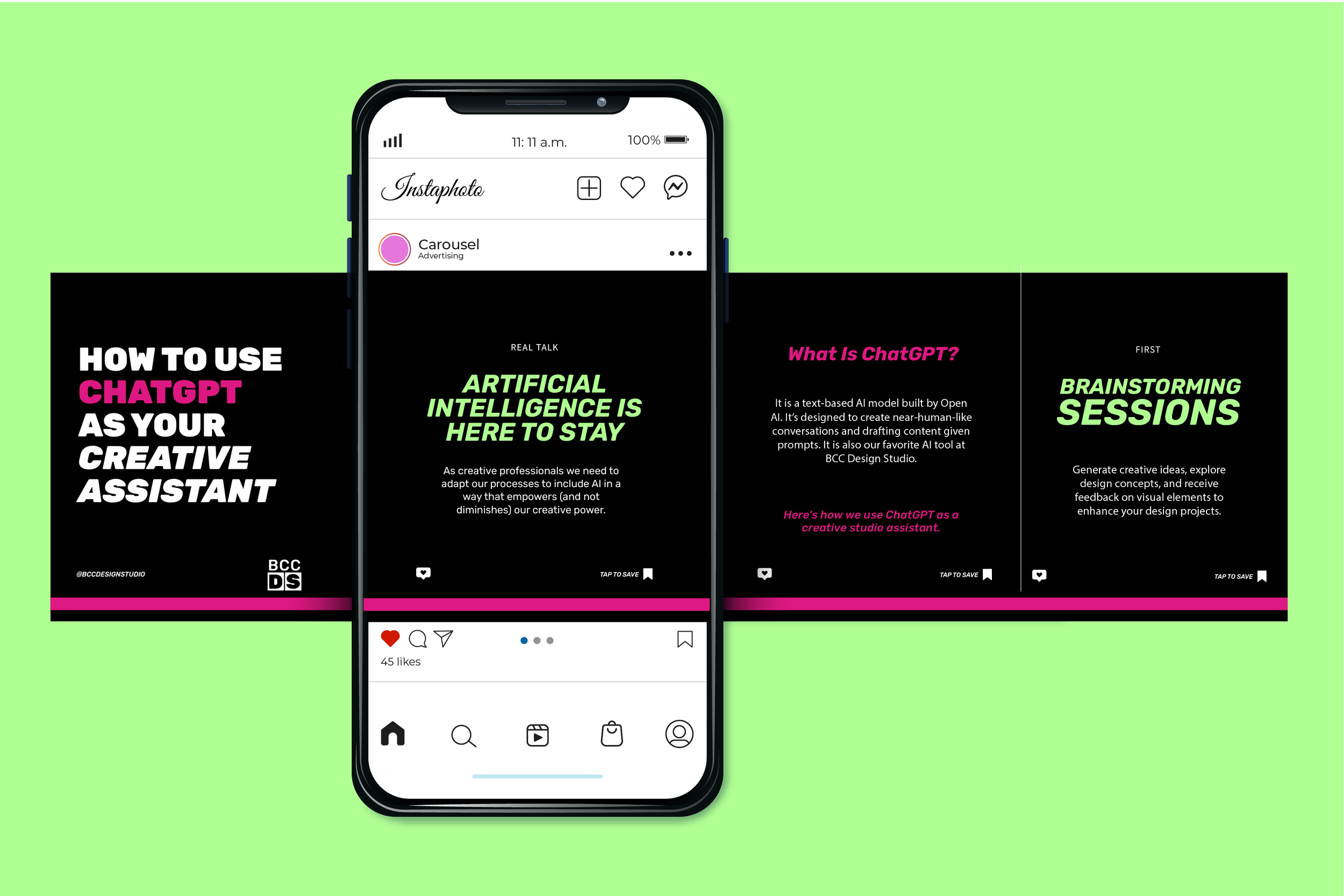 I had the honor to create social media content for the BCC Design Studio Instagram. Keeping their style sharp and minimal while making sure each post stayed true to their voice and visual identity.